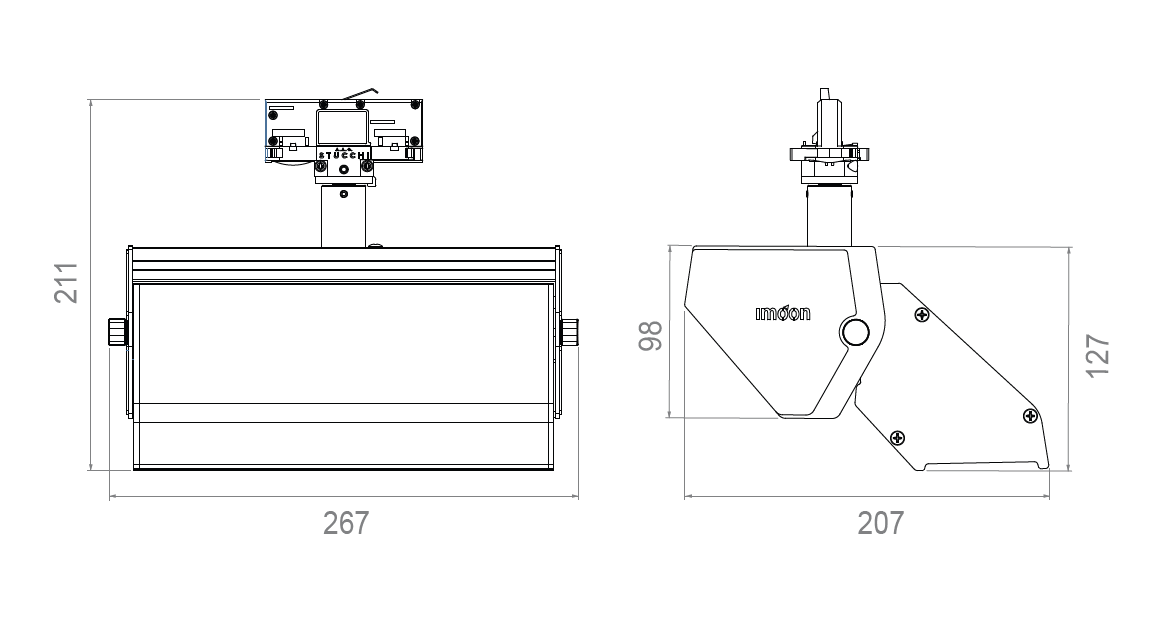 | Optika | reanodizált, PVD eljárással bevont alumínium; -10 ° és + 20 ° között dönthető |
