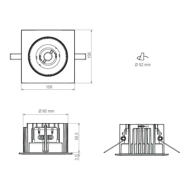 | Optika | polikarbonát fényvisszaverő alumínium fém bevonattal, kivéve 80°-os változat fehér színben 15° 25° 38° 57° 80° |